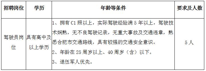 現因2019年度合肥市市場監督管理局根據工作需要和合肥市市場監督管理局政府購買駕駛員崗位服務控制數空缺情況,面向社會公開招聘政府購買駕駛員崗位工作人員5名。